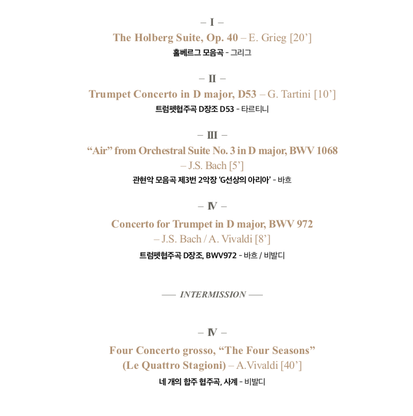 이번 연주회에서 연주될 「트럼펫 협주곡 D장조」는 「타르티니의 바이올린 E장조」를 장 틸드(Jean Thilde)가 트럼펫의 거장 모리스 앙드레를 위해 편곡한 작품입니다.