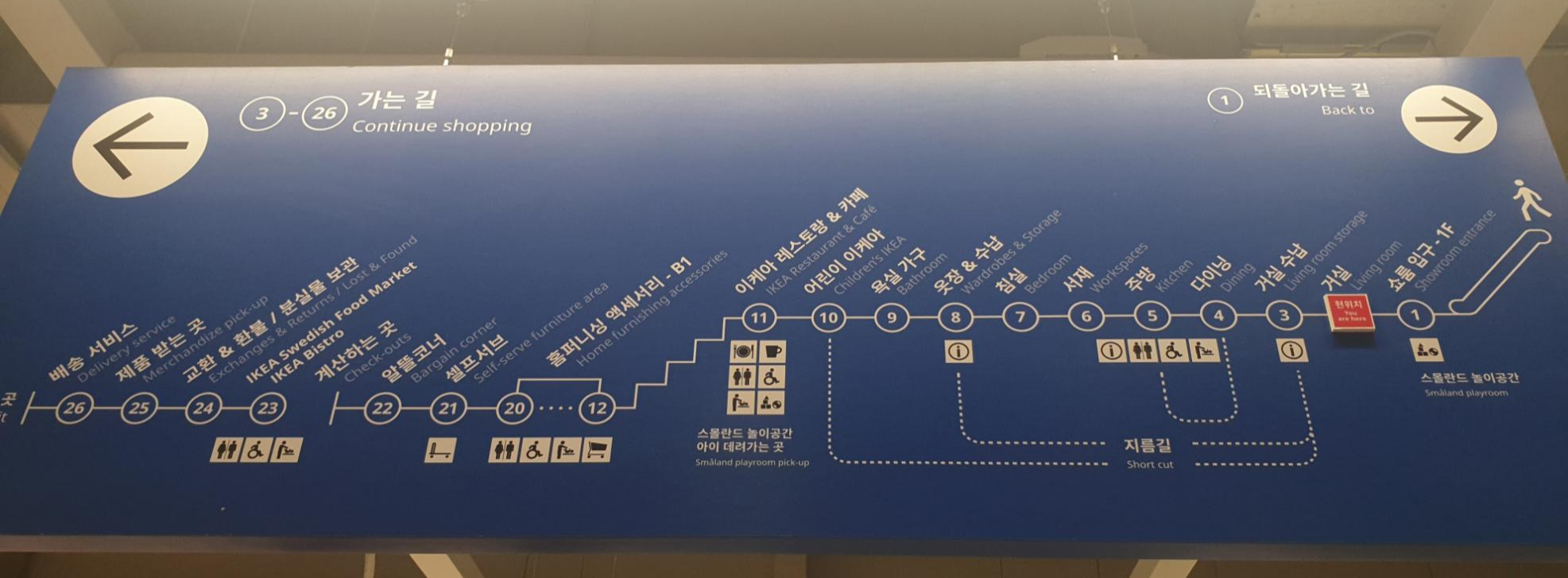 번호를 보면서 현위치가 어디고 몇 번을 가야 내가 원하는 것을 볼 수 있는지 곳곳에 표지만이 붙어 있어요