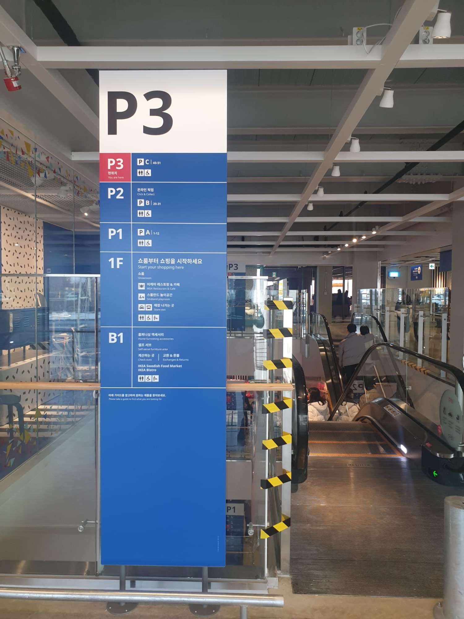 외부 주차장으로 들어가시면 3층이라서 에스컬레이터를 타고 1층으로 내려가면 됩니다.