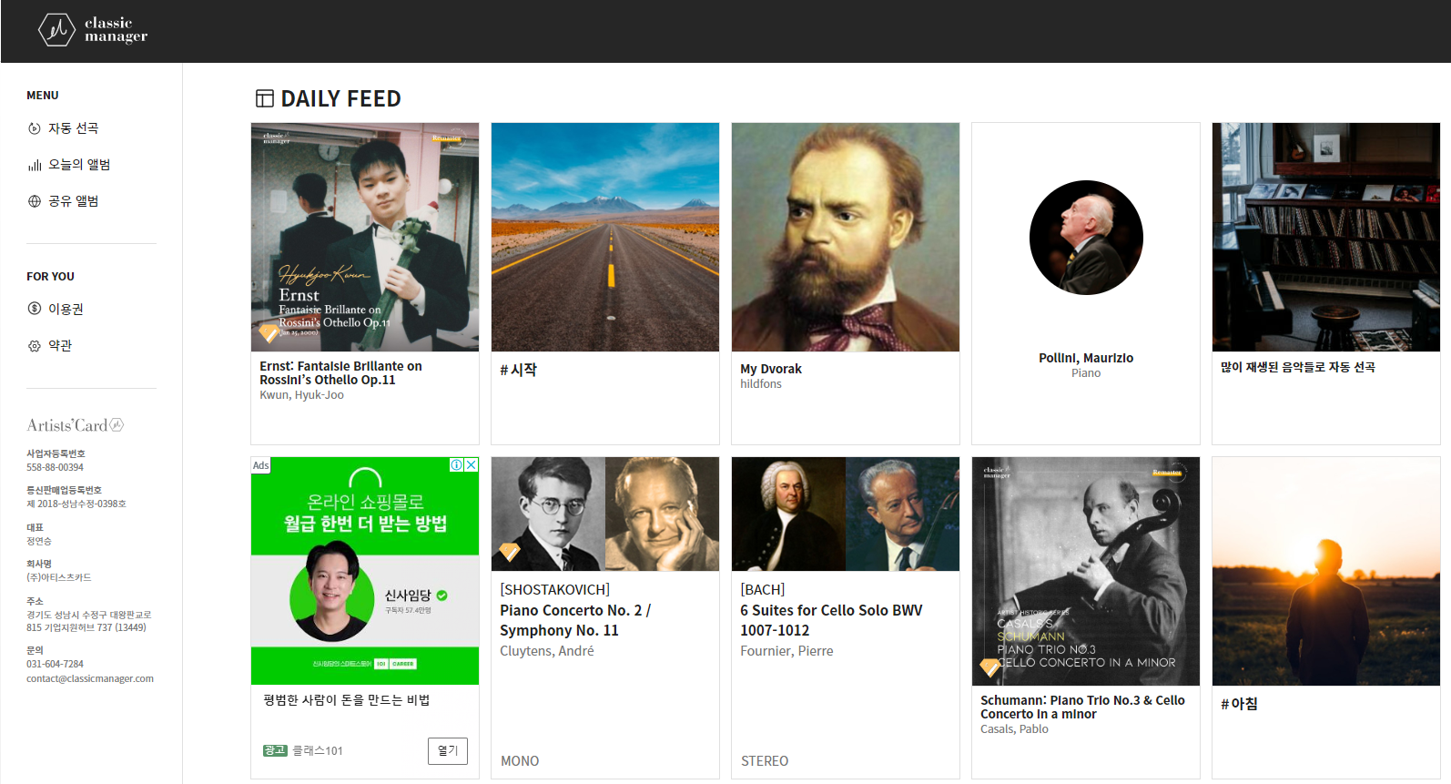 매일 추천해주는 클래식 음악도 있고,