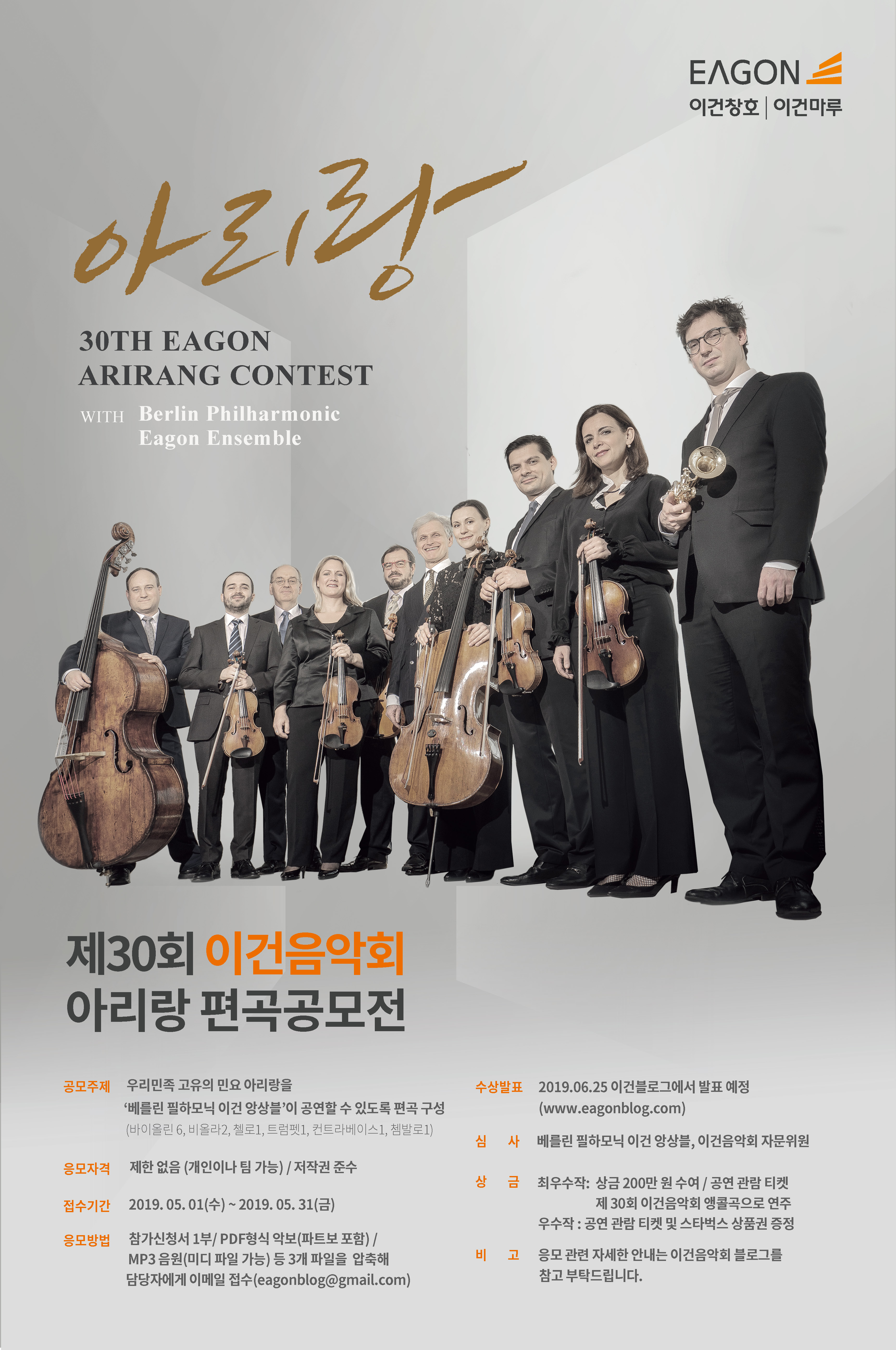 30회 이건음악회 기념 아리랑 편곡 공모전 안내 - 베를린 필하모닉에게 아리랑을 선물하세요!