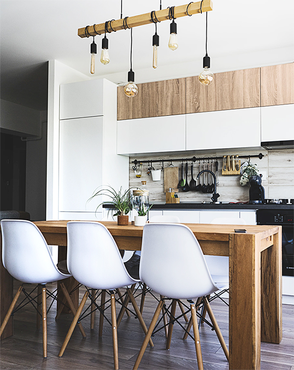 식탁 위는 어둡지 않도록 연출하며, 배치 시 벽에 붙이지 말고