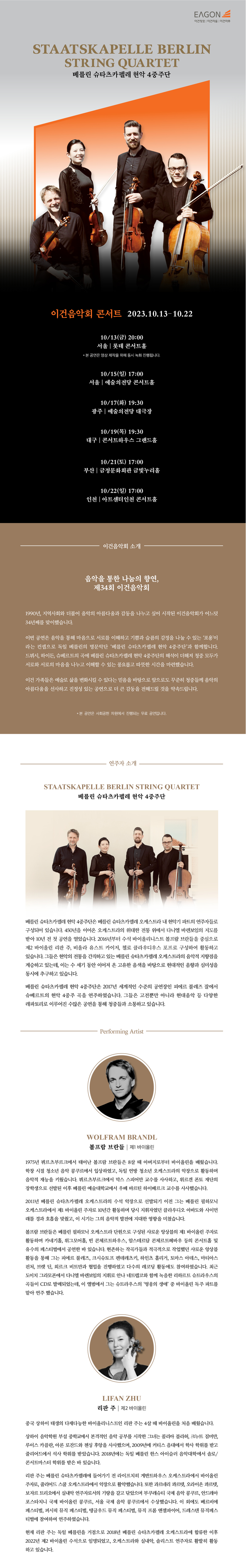 제34회 이건음악회 - 슈타츠카펠레 베를린 현악 4중주 초청공연의 티켓 응모 이벤트를 진행합니다.